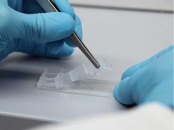 自粘性的12孔硅膠插件粘在一個(gè)標(biāo)準(zhǔn)的玻璃載玻片上